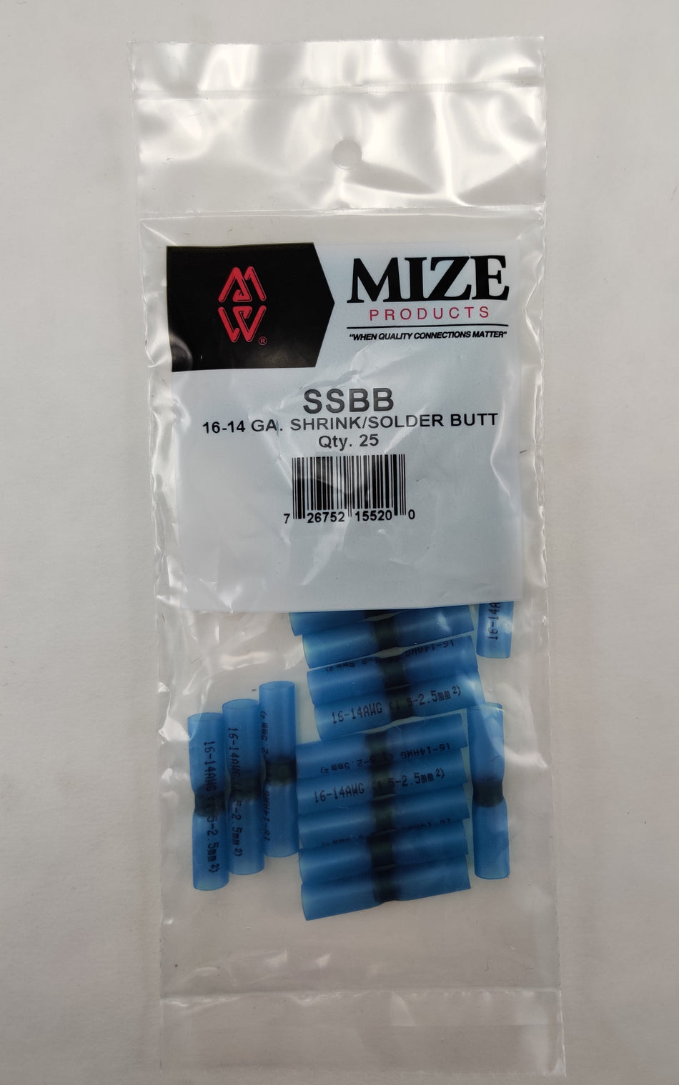 Mize 25 Pc Blue Size 16-14 GA Heat Shrink Solder Core Butt Connectors