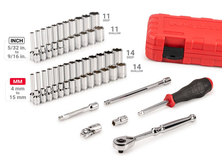 1/4 Inch Drive Shallow and Deep 6-Point Socket and Ratchet Set with Case, 56-Piece (5/32-9/16 in., 4-15 mm)