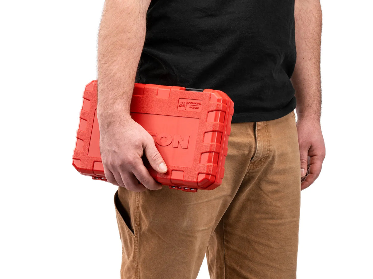 - Molded size markings for each tool inside the case