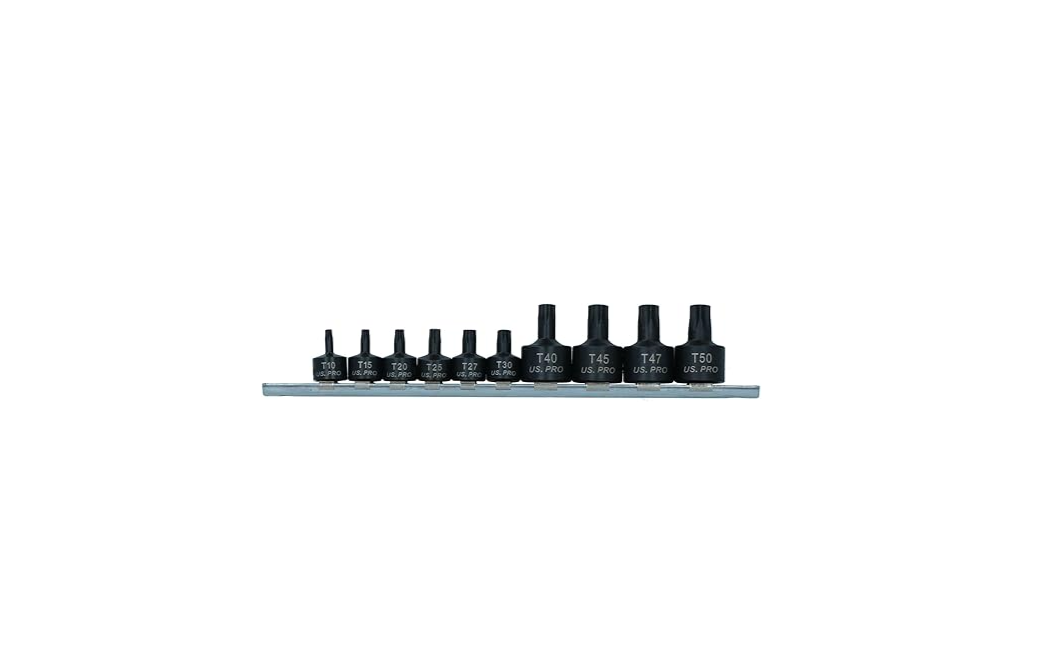 The Titan 16143 10 Pc Tamper Torx Impact Bit Socket set includes high-quality sockets designed for use with tamper-proof Torx bolts. With sizes ranging from T10 to T50, this set is perfect for automotive professionals and DIY enthusiasts alike. The Titan brand ensures durability and reliability, making this product a valuable addition to any tool collection. Whether you're working on a car repair or a home improvement project, this socket set will have you covered.